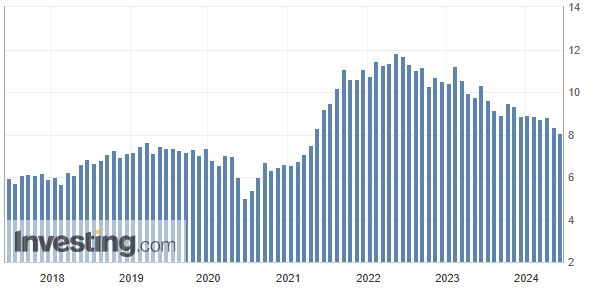 这使得职位空缺数与失业人数之比降至1.2 : 1,为2021年6月以来的最低水平。需要指出的是,这一比例是美联储官员密切关注的一个数字,曾在2022年达到2 : 1的顶峰,但之后已经明显放缓。