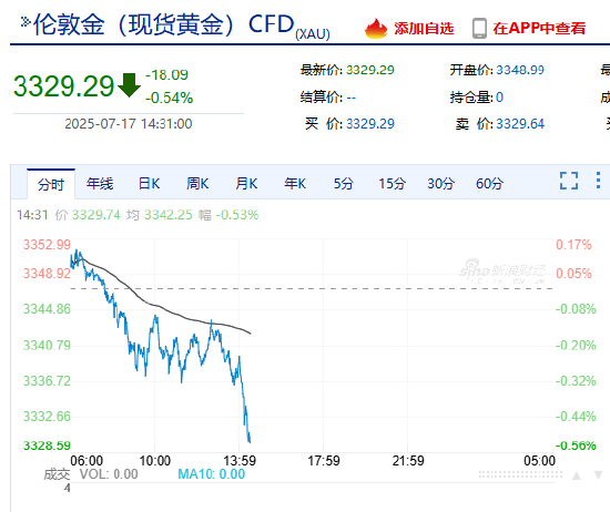 快讯|现货黄金失守3330美元/盎司,日内跌幅0.53% 来源:华信期货 作者:华信期货有限公司 时间:2025-07-17 14:32 北京时间7月17日下午,现货黄金失守3330美元/盎司,日内跌幅0.53%。 新浪合作大平台期货开户 安全快捷有保障