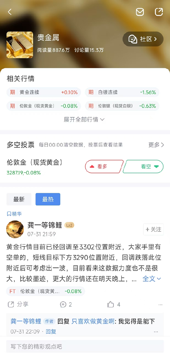 新浪财经贵金属社区:用户基数大,分析师实时解盘频次高,热门话题(如 “美联储降息对黄金影响”)讨论量日均超千条。