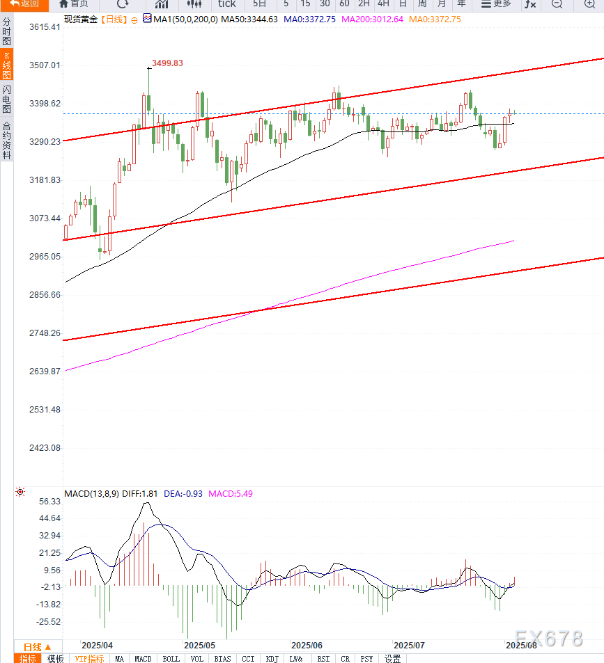 技术面显示,金价若守住3350美元关口,仍将维持震荡上行趋势。