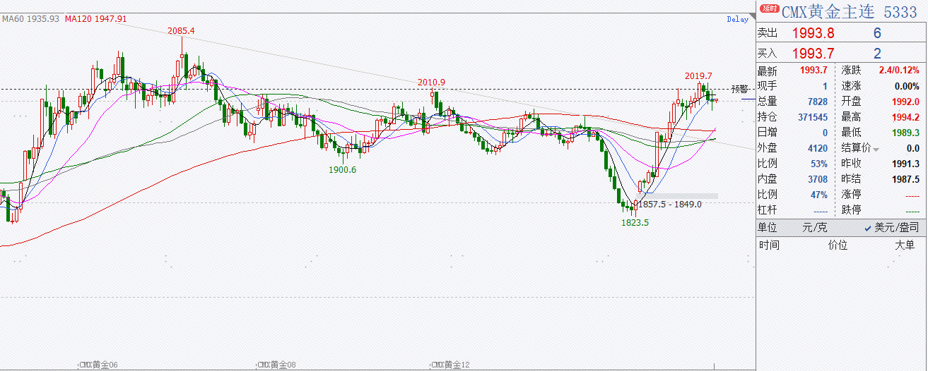 截止11月1日收盘,COMEX黄金12月合约收盘于1991.3美元/盎司,跌幅0.07%,成交19万手,持仓37.2万手;COMEX白银12月合约收盘于23.05美元/盎司,涨幅0.39%,成交5.3万手,持仓9.4万手。