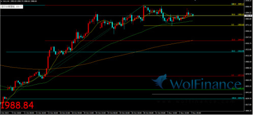 国际黄金周五(11月3日)震荡收涨,开盘价1980.98美元/盎司,最高价2003.83美元/盎司,最低价1978.83美元/盎司,收盘价1991.52美元/盎司。