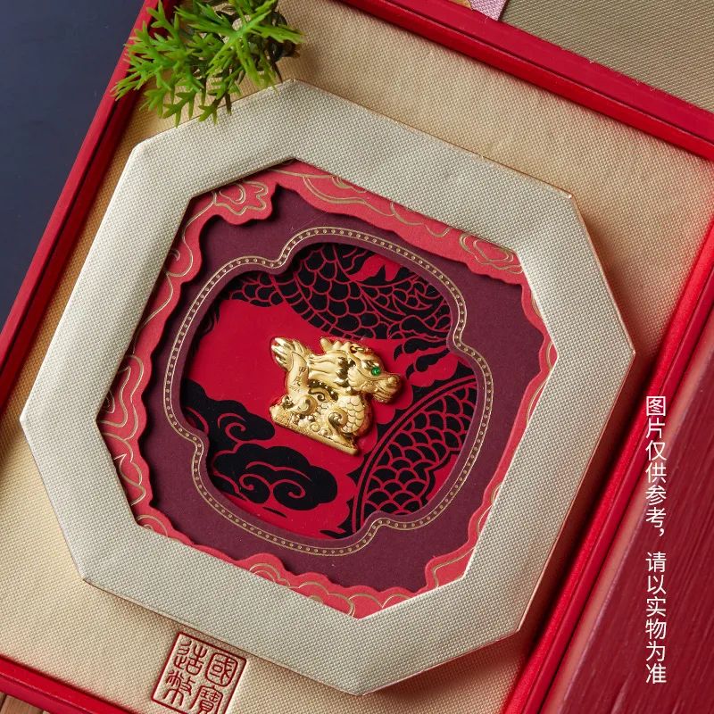 兴运龙异形金银章配有红色高档包装盒和手提袋,自留喜庆随心,礼赠诚意满满。