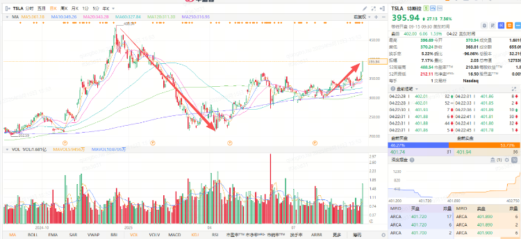 华盛资讯9月15日讯,在“Q3交付量乐观、Optimus机器人量产渐近 、Robotaxi新进展”三重利好加持下,特斯拉股价情绪高涨,近两个交易日飙升14%创近8个月新高,几乎抹平2025年来所有跌幅。