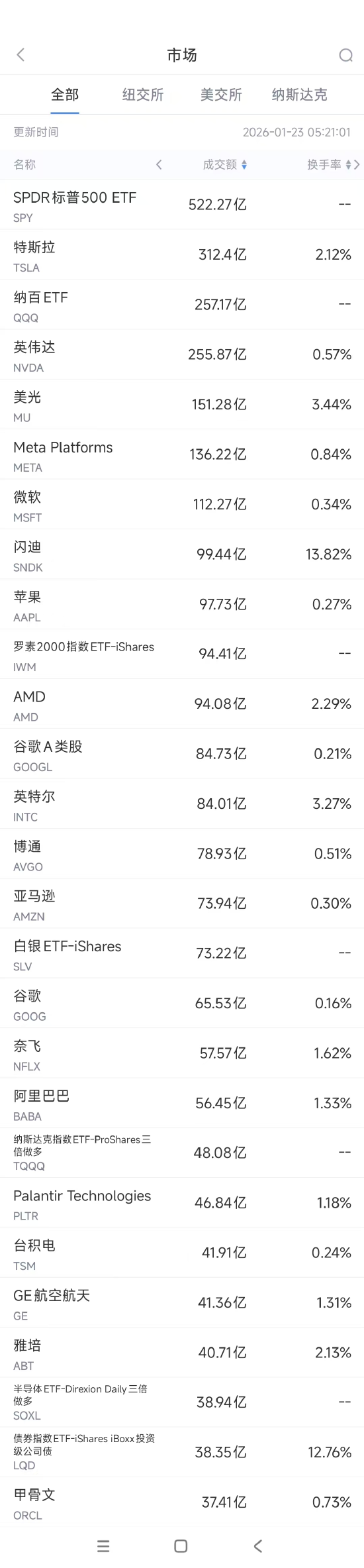 1月23日美股成交额前20:马斯克称人形机器人或在2027年底前上市