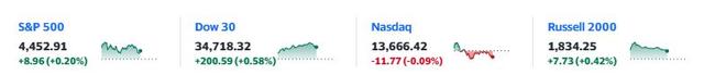 决策公布前5分钟,道指涨200点或涨0.6%,标普500指数涨0.2%,纳指跌0.1%,罗素小盘股涨0.4%。