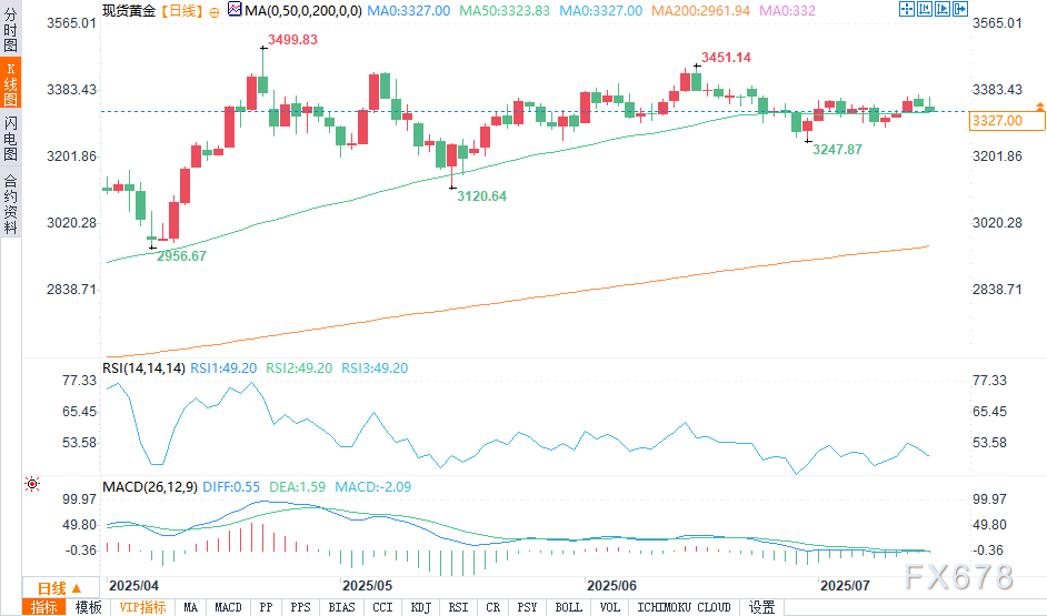 北京时间23:38,现货黄金报3328.24美元/盎司,跌幅0.45%。