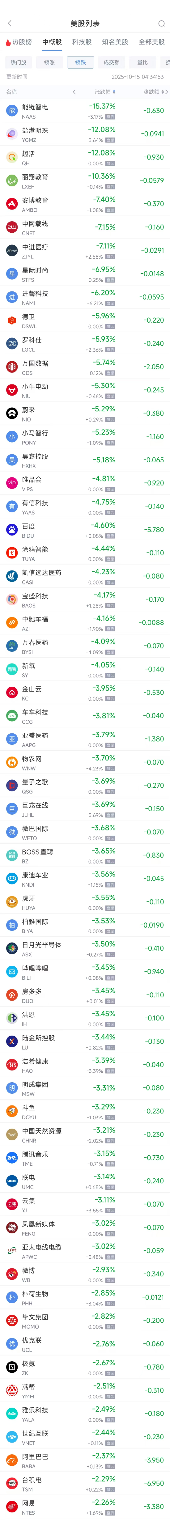 (截图来自新浪财经APP 行情-美股-中概股热门板块)下载新浪财经APP